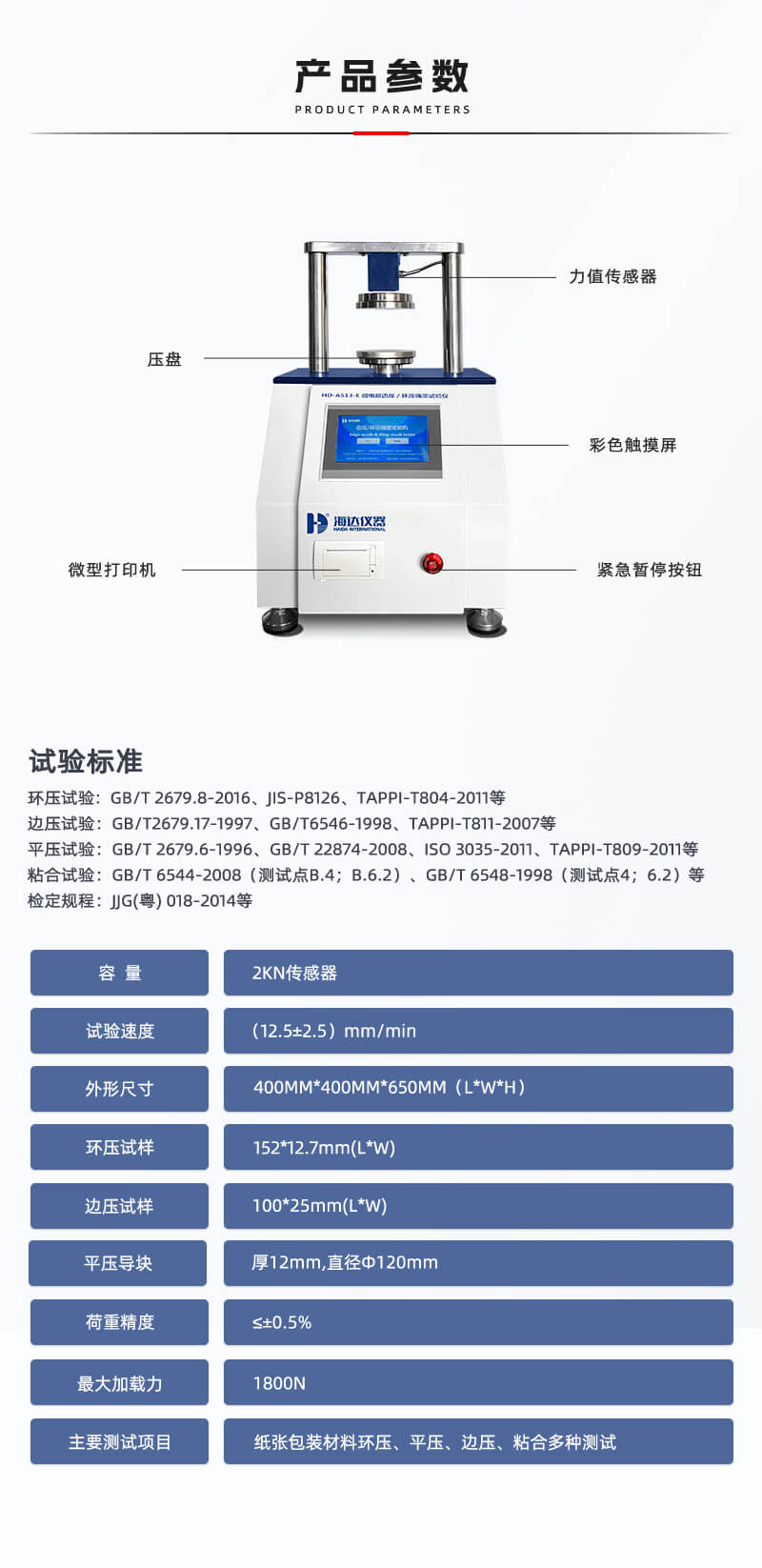 環(huán)壓試驗::GB/T 2679.8-2016、JIS-P8126、TAPPI-T804-2011等