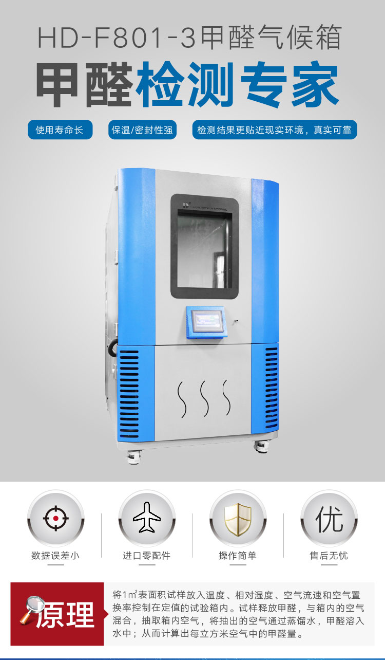 甲醛試驗箱(1個立方)適用于各種人造板、復合木質地板以及地毯、地毯襯墊及地毯膠粘劑等室內裝修材料甲醛釋放量的測定、木材或人造板的恒溫、恒濕平衡處理,也可用于其它建材中揮發性有害氣體的檢測。