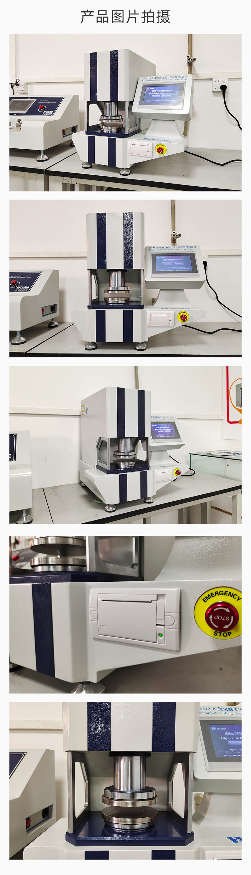 觸屏款邊壓/環壓強度試驗儀可配合多種紙張包裝材料來進行多種紙張質量測試,如環壓(RCT)、平壓(FCT)、邊壓(ECT)、粘合(PAT)多種測試,是結合多項功能于一體的測試設備。