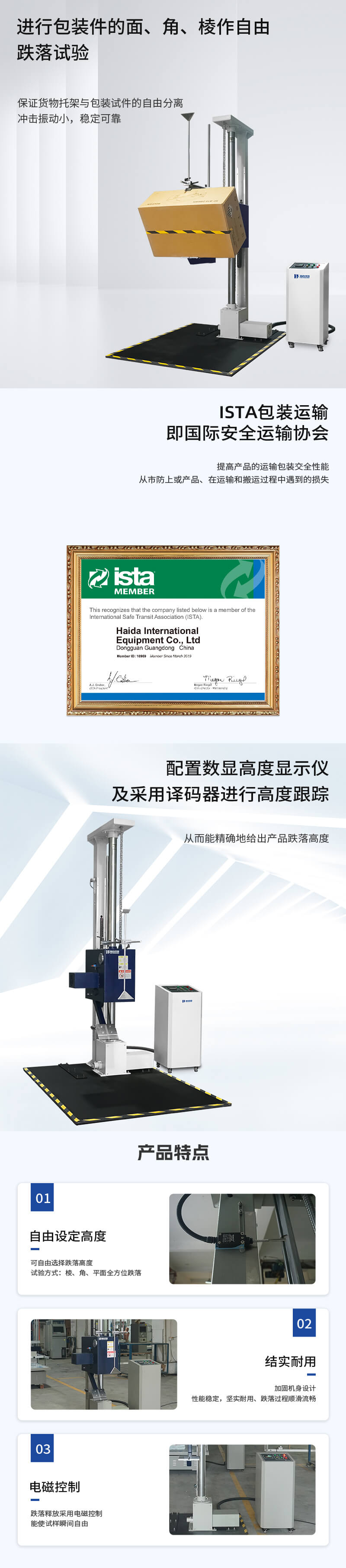 單翼跌落試驗機用于測試產品包裝受到墜落之受損情況,及評估運輸搬運過程時耐沖擊強度。